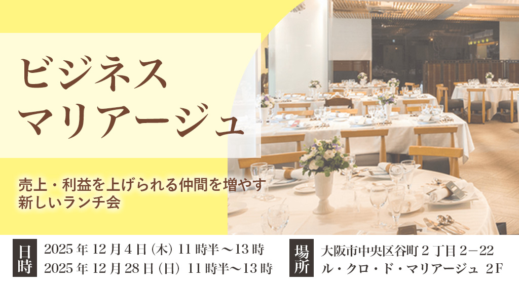2025年12月4日(木)・12月28日(日)【ビジネスマリアージュ】~売上・利益を上げられる仲間を増やす新しいビジネスランチ会~