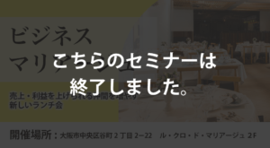 ビジネスマリアージュ(通称:ビジマリ)は、この会を通じて出会った人同士が共にビジネスを行い、お互いWin-Winの関係を築き、売上・利益を上げていくことを目的とした新しいランチ会です。